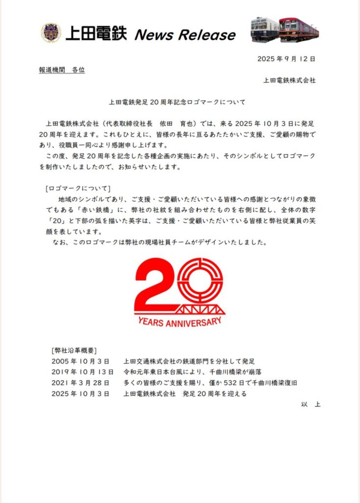 上田電鉄株式会社 発足20周年記念ロゴマークについて